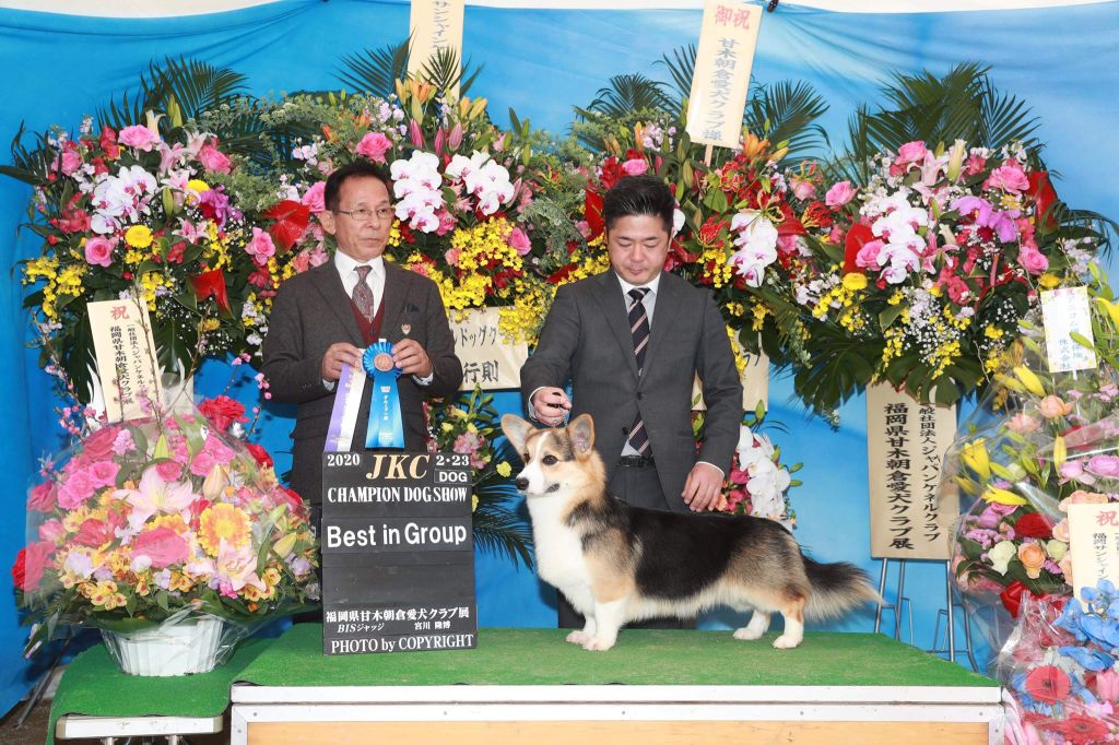 Prince flew out in September 2019 and after time was placed in the hands of a professional handler. In February 2020 Prince went to his first Japanese show and was immediately successful by winning BoB three times over a weekend with group placings on day one and day two saw him win the FCI Group 1. Prince was shown before Covid 19 put paid to the Japanese show scene until the Autumn when he was shown again and at the show penultimate weekend in October he took 3CC and one MC to take his New Champion title. Here we are extremely pleased for his owner and her connections.