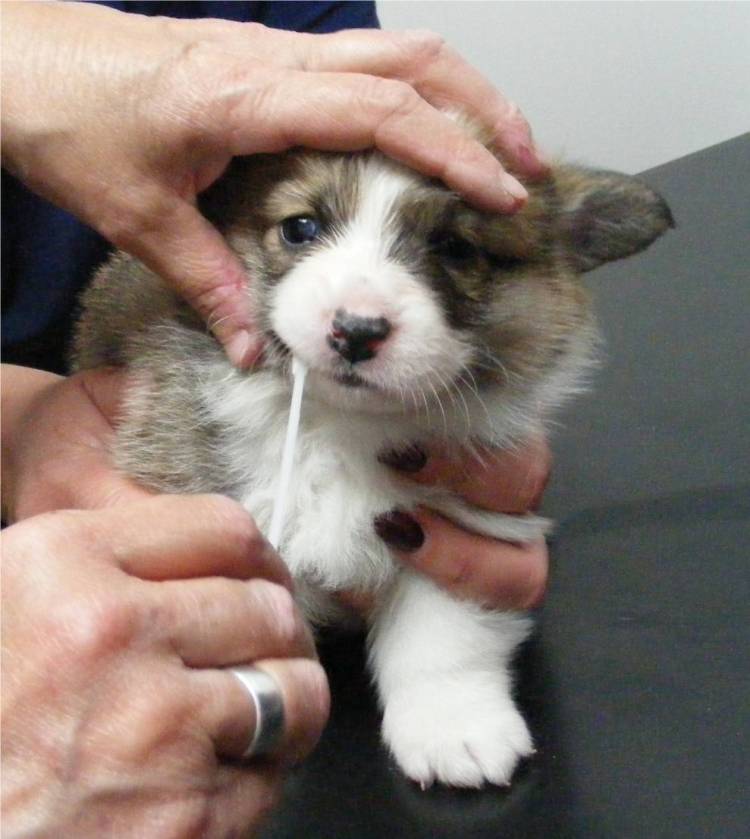 We will swab the pups at four weeks once they have had their microchips and the swabs will go to Aberystwyth Uni in their DNA sampling centre.