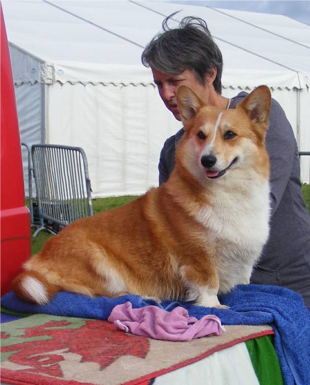 Buttons was our first Pembroke and she came from a farm in Co Mayo, Ireland and was 16 months when we collected her. Her first show was at the Agricultural show the following day at Nine Mile Boris. Buttons first CC show in the UK was in the LKA show where she was placed fourth in a large entry under an all round judge. Buttons had three litters of which one pup became an Ir Jun Ch and Lance became an Australian Ch with the Nireno Kennel. It was with Buttons third litter that we started our DNA testing.